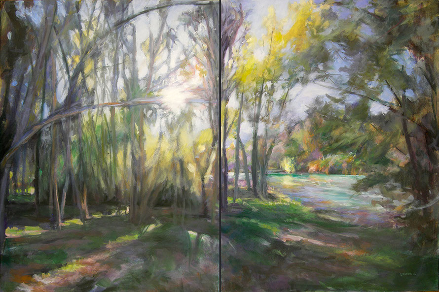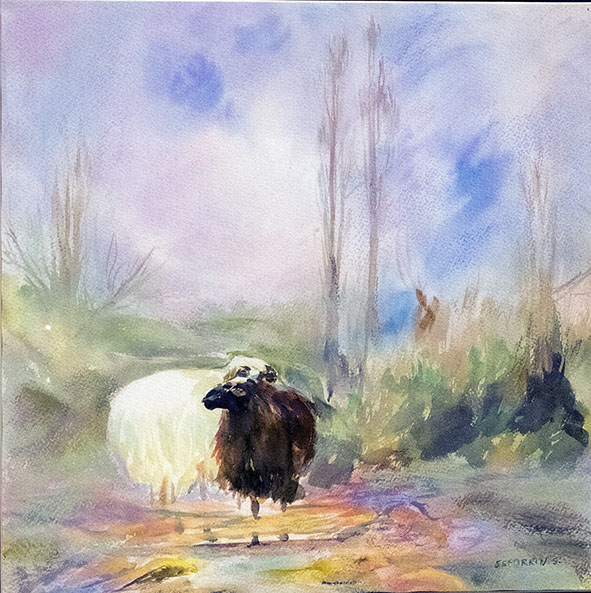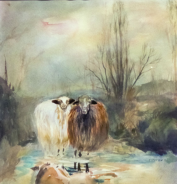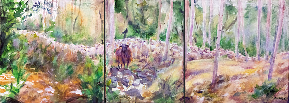 Esporrín Sanclemente, en estas más de 40 obras que expone, nos propone un juego de instrospección con su pintura, hecha de contemplación en clave de naturaleza, para viajar por paisajes vividos a los que hace suyos merced a pincelas llenas de luz y apasionamiento. Pilar crea espacios porque domina la perspectiva, en sus marinas, en sus riberas, en sus frondas y montañas, y presiente la vida que cobijan dejándose llevar por el animal al que hace protagonista del paisaje en íntimos detalles. Su evocación de la vida animal es paralela a lo vegetal y mineral en una simbiosis que viene a conformar unos muy personales escenarios por los que encontrar a sus actores, a la vez que contarnos la historia que guardan los instantes. Dos sendas excepciones, sin embargo, dan a la figura humana la interrelación con las otras formas de vida.